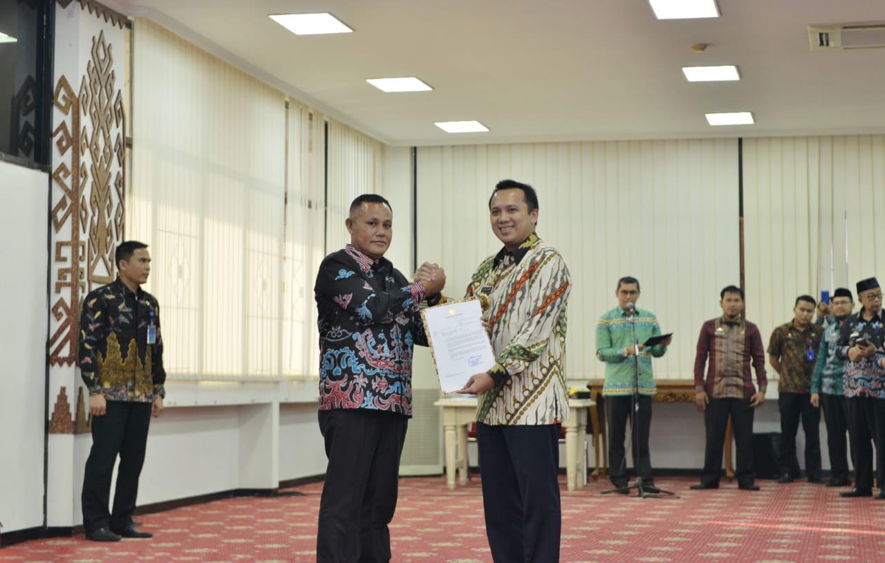 BANDARLAMPUNG—Gubernur Lampung M.Ridho Ficardo menyerahkan Surat Tugas Plt Bupati Lampung Selatan kepada Wakil Bupati Lampung Selatan Nanang Ermanto, di Ruang Abung Balai Keratun Provinsi Lampung, Jumat (3/8) sore.