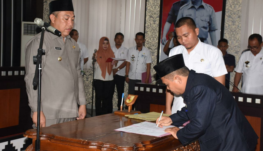 Pelantikan berlangsung di ruang rapat utama kantor bupati, Rabu (10/7).