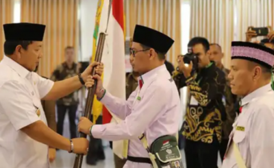 BANDARLAMPUNG-Jemaah Calon Haji Kloter Pertama Provinsi Lampung dilepas Gubernur Lampung, Arinal Djunaidi, Rabu (10/7). Pelepasan jamaah asal Kabupaten Lampung Tengah…