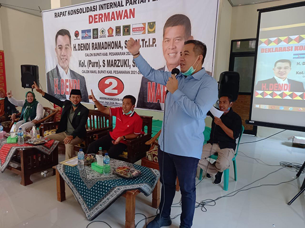 Janji Dendi ini disampaikan dalam rapat konsolidasi internal partai pengusung Dendi-Marzuki untuk Pesawaran atau biasa disingkat Dermawan, di Desa Sanggi, Padang Cermin, Pesawaran. (zal/is/her)