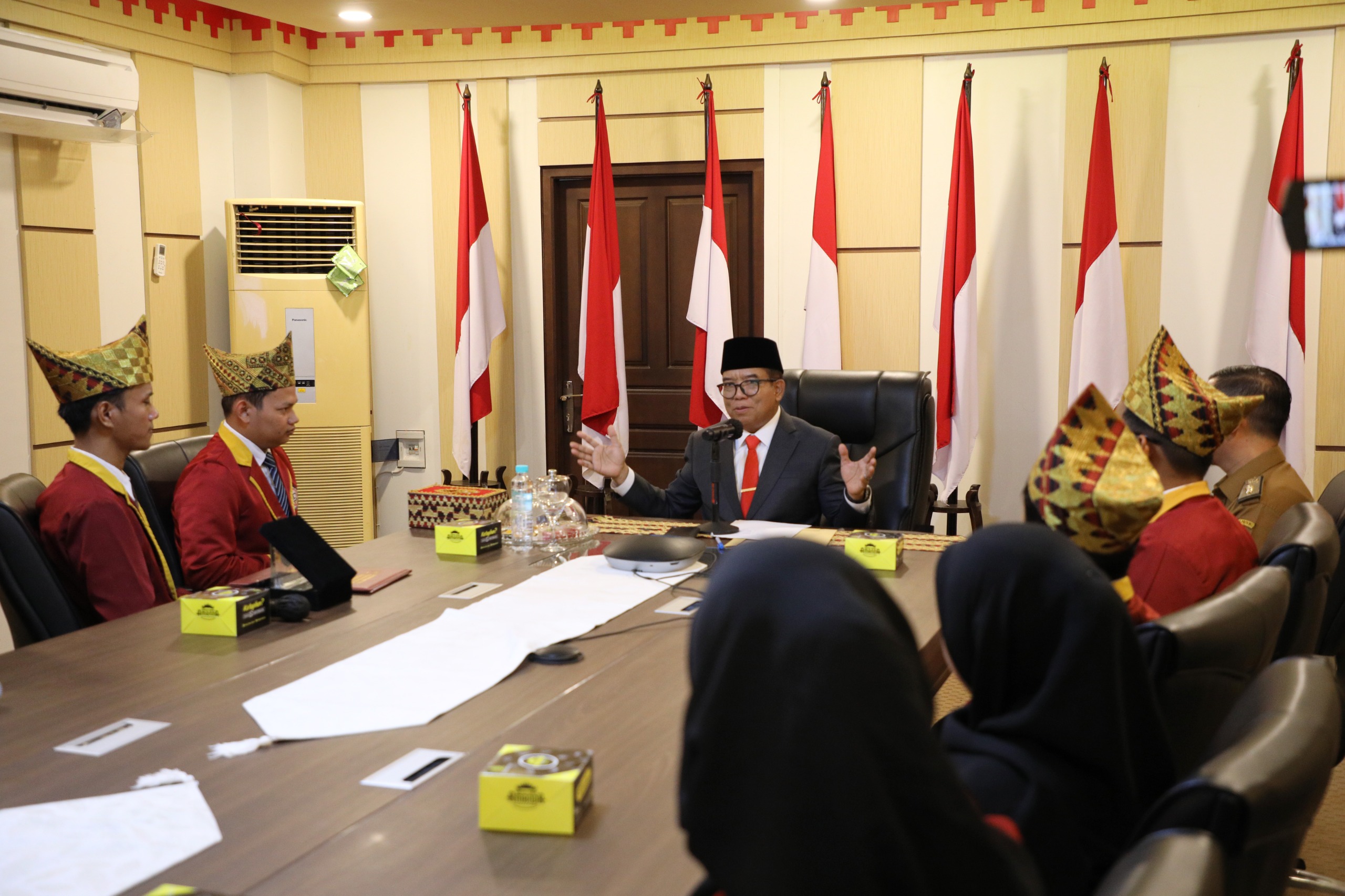 BANDARLAMPUNG– Pj. Gubernur Lampung Samsudin menerima kunjungan jajaran Civitas Universitas Teknokrat Indonesia dan BEM Universitas Teknokrat Indonesia, di Ruang Sakai Sambayan, Kantor Gubernur Lampung, Bandar Lampung, Selasa (24/9/2024).